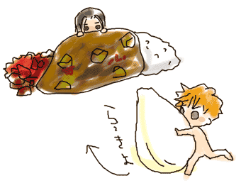 いらっしゃいませ〜! うひゃおぉぉおーん!好物の趣向が変わるのと違って、 胃が受け付けなくなる変化はマジで年月を感じるであります! お仲間が!勝手に連帯感を抱いて食生活摂生を心がけようと思います! 辛いもの美味しいですよねー♪夏はカレー! 辛いのが好きといってもLEEの10倍が我が家の通常版という程度のぬるさですが… 三丁目ってかなり辛そうですね!!ン年前ならばチャレンジしそうです! 「夏は辛い物を!」の標語は千石さんあたり叫びそうなイメージです(笑) 食生活、自重しつつ残暑を乗り切りましょう! 拍手&メッセージありがとうございましたー! -------- 絵ちゃで、福神漬にまみれた伊武さんを見たことを思い出します…!