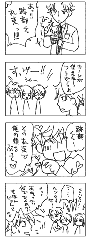 × [PR]上記の広告は3ヶ月以上新規記事投稿のないブログに表示されています。新しい記事を書く事で広告が消えます。 7/8レスです♪ヒダリさんへ いらっしゃいませー!モヤモヤ千石さんをお召し上がりいただき、ありがとうございます!! あれは、恋愛慣れしていると思っているのは本人だけというダメ千石さんですv カッコイイ清純が好きなのですが、このパターンではせいぜい雑草根性しか垣間見えず 千石さんならどこまでもいぢめていい、というS心を発揮して書いております。 千石さんだけじゃなく伊武さんのダメな所も出したいので、まだ続きそうです。 のんびり更新ですがおつきあいくださいvがんばりますー!拍手ありがとうございました♪ こんな場所からアレですが、ヒダリさんの千伊武には毎回心で雄叫びを上げさせていただいております!! 「歪み」の2人の関係の深淵さよ!!千石さんが何考えてるのかを思いめぐらすだけでたぎります。何時間も考え続けられそうです。 萌をありがとうございます!! -------- 友だちがウサギを飼っています。 夏が苦手みたいでデローンと伸びていました。 真っ黒いつやつやお目めがかわいいウサギです。 なのに…なのに顔をみたら… 白目剥いてた!!! ヒィ! ウサギにも白目部分があったのね! ていうか、生きてるの!?しっかりしろー! 友人は、寝てるだけだよと言いますが ウサギって白目剥いて寝るの!? 可愛くない!! 超怖えぇ! ジャングリズムの666ウサギ思い出した。 PR