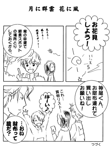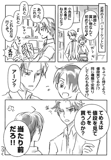 おいしいラーメンが食べたい! 橘さんと千歳さんはトンコツ派に決まっていますが、 他のみんなはどうでしょう。 神尾は塩、醤油などでアッサリ系が好きそうです。 千石さんはチャーシュー麺!て言いそう。 伊武さんは何でも良いからしなちくたっぷりあとライスとギョウザとザーサイもね…って言いそう。 跡部さんは……難しい!! ラーメンすすれるんですか!? 何か上品なラーメン食いそうです。 神尾がラーメン食いたい! って言ったら高級中華料理店に連れて行かれ、 ラーメン以外が次々出て来て神尾がっかりだといいな。 赤澤さんは担々麺 日吉くんは味噌 ダビデは五目そば 赤也は麻婆麺 裕太くんはバターコーン 沖縄勢はそーき HAHAHAは味噌煮込み …途中からラーメンじゃない!! いいよもう、全員橘さんが作ったうまかっちゃんが一番の好物なんだよ。 千歳さんは間違いなく夜中に桔平の持って来るうまかっちゃんラブ。 お腹へったよー。 ラーメン食べたいよ。 昨日から美味いものが猛烈に食べたい病です。 |
