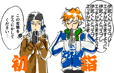 ひたすら食べて寝ていた正月です。 そして友人宅の黒い小兎がキュートすぎてメロメロになっておりました。 遅くなりましたが12月29日の16時頃の拍手レスです いらっしゃいませー! 千伊武ステキとのお言葉、嬉しいかぎりでございます。 のんびりしておりますがまだまだ千伊武で頭がもやもやえろえろしております! 拍手&コメントありがとうございました!! ________ 休みの間、祖父母の家に新年の挨拶に行きました。 親戚が集まってすき焼きです!! お肉です!!日本酒です!!肉、肉、酒、酒、肉、酒、酒! ここ数日で体重が3kgも増えている気がするのですが、 厚着していたせいだと思いたい。 きっと気のせいです。 深司たんはきっと寝正月。 寒いから外出もせず、餅ばかりを食べてテレビ見てみかん食べて餅食べて、 新学期はきっと丸くなってるんですよね。かわいい! 神尾たんは元気に遊び回る派。そして宿題してない派。かわいいー!! 跡部たまは海外 千石さんは深司の家。(深司たんが「寒いから出たくない」って言う) そして一緒に餅食べてお土産の漬物出して餅食べて、冬休みの間通い、時々泊まって、 新学期はきっと丸くなってるんですよね。かっこわるい!(←愛です) |