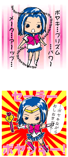 1月23日17時頃の方へ かわいいとのお言葉…!ありがとうございます! こう、にじみ出る、かわいいって言うメッセージ、 嬉しいです!いろいろと萌えを垂れ流すかいがあります。 拍手ありがとうございました! 1月24日maniさんへ セーラーボヤッキーを見ていただけたのですね! くはっ(喜び悶え)嬉しいお言葉ありがとうございます! ちっちゃいことはちっちゃいですがよりによって セーラー服…!と自分でツッコミ入れてたんですけど、 メッセージまでいただいて本当にありがとうございます。 また小さくコスプレ…じゃなくても 描き晒していくので、宜しくお願いします! ----- セーラーも平然と張り付けてしまう鬼畜な私でしたが ありがたいお言葉を頂けて嬉しいです!! この嬉し恥ずかしい感覚は… わたしは鬼畜のつもりで羞恥プレイをしていたのでしょうか?! そして調子にのります。嬉しかったのです。 セーラーラッキーがいないので追加しました。 さすがに千石さんを攻で取扱ってるので セーラー姿は需要どころかノーサンキューを危惧し、 下のラッキーパワーメークアップをクリックして先へどうぞ。 セーラーラッキーvsベカミ PR