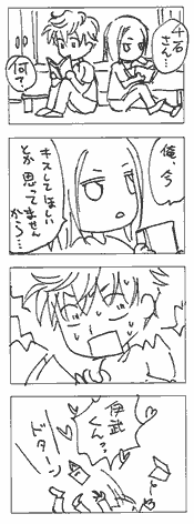 いらっしゃいませ!暑中見舞い裸清純は、やましい心で見ると恥ずかしくて閉じたくなる仕様となっておりますv私は閉じました。 かっこよいと言っていただけて猛烈に嬉しいです!! ボクサーボクサーと念じながら書いたのですが筋肉って難しいです。 小説も頑張ります♪のろのろしてますが、必ずや! 拍手ありがとうございましたー! -------- 今日は涼しくて驚きです! 頑張って掃除中。 今週もジャガイモを茹でまして、芋三昧です。 昨日はジャガイモにごま塩 昨日の夕飯はジャガイモにレトルトカレー 今日の昼はジャガイモにバターとマヨネーズ いいかげん食い終わったので、 夕飯は違う物にする予定です。 ニョッキです。 …………ニョッキってイモじゃないですかーーーー!!!!! |